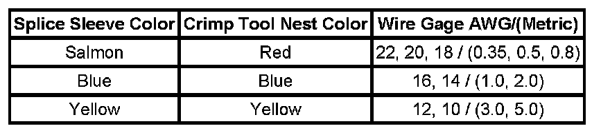 5. Select the proper sealed splice sleeve according to the wire size. Refer to the table provided.