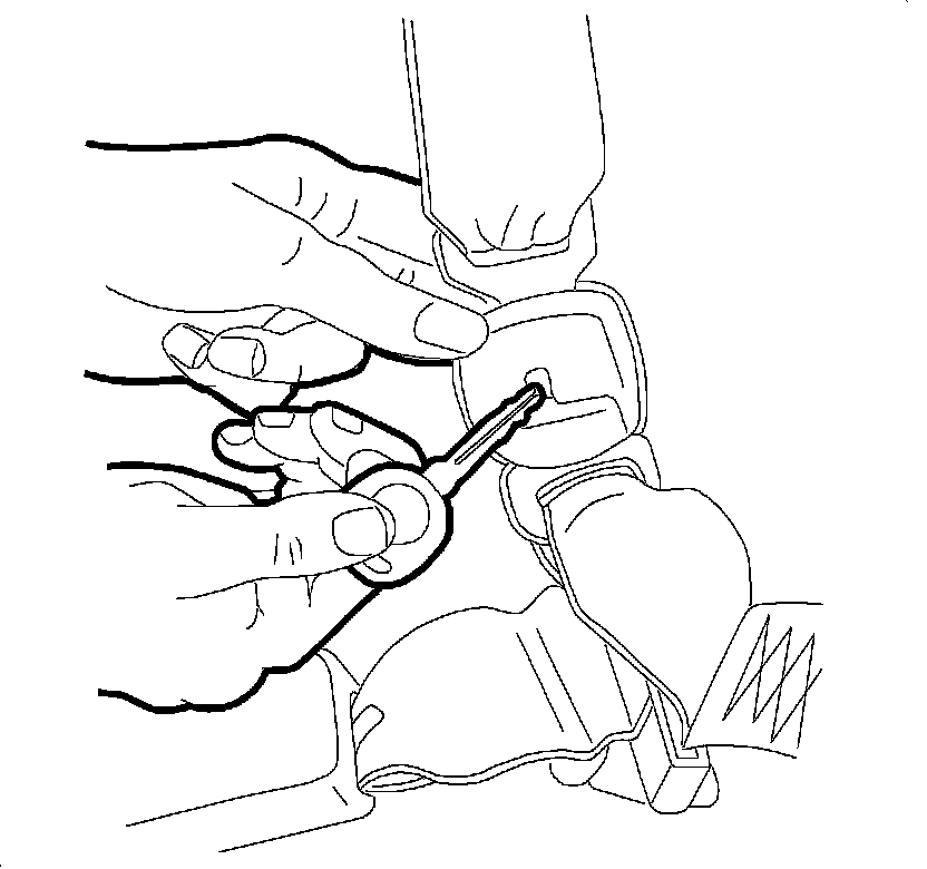 10. Install the center shoulder belt into the buckle.
