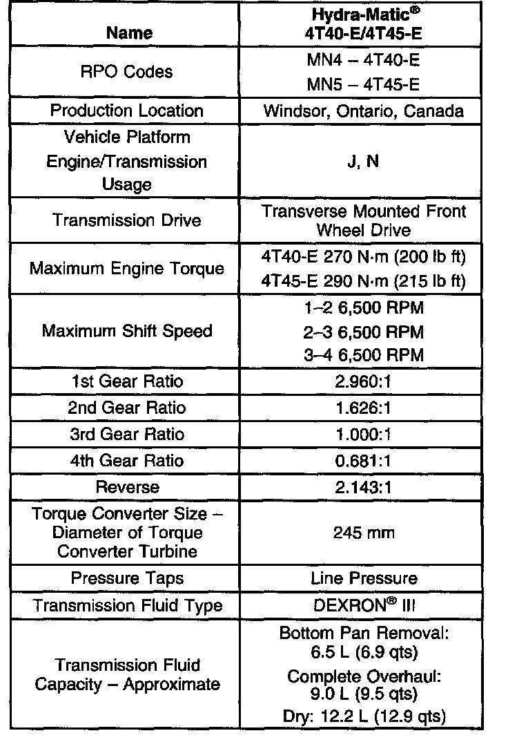 Transmission General Specifications, Part 1: