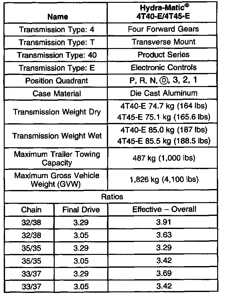 Transmission General Specifications