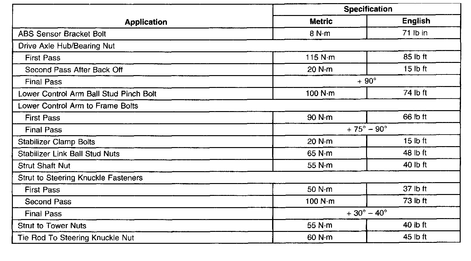 Torque Specifications: