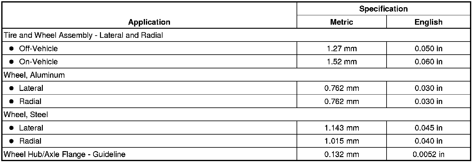 Tire and Wheel Runout Specifications