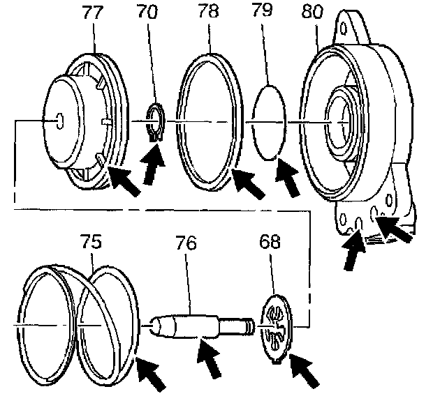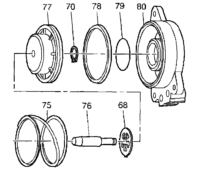 4. Remove the servo piston seals (78, 79) from the servo cover (80).
