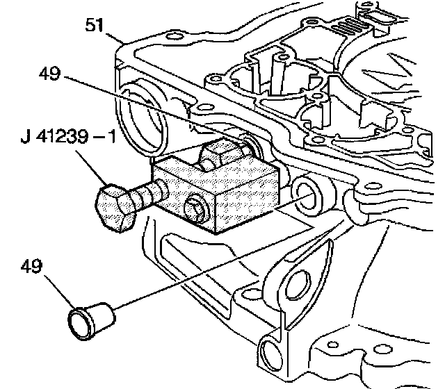 3. Install the J41239-1 on the transmission case (51) at the cooler line bracket bolt hole.