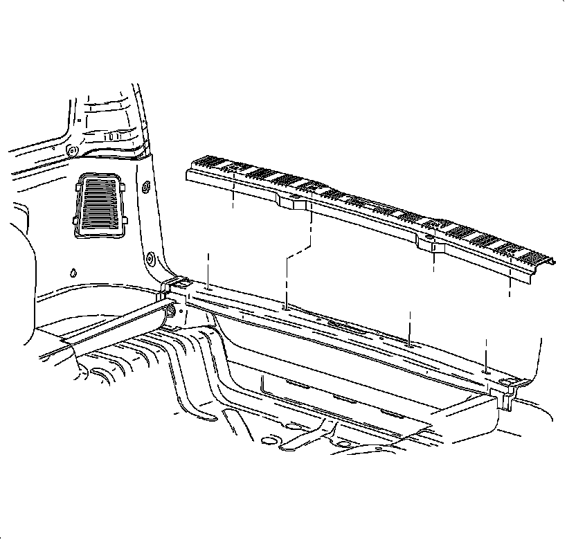 1. Position the trim plate onto the lift gate sill and push at the attaching clip locations to install the trim plate.