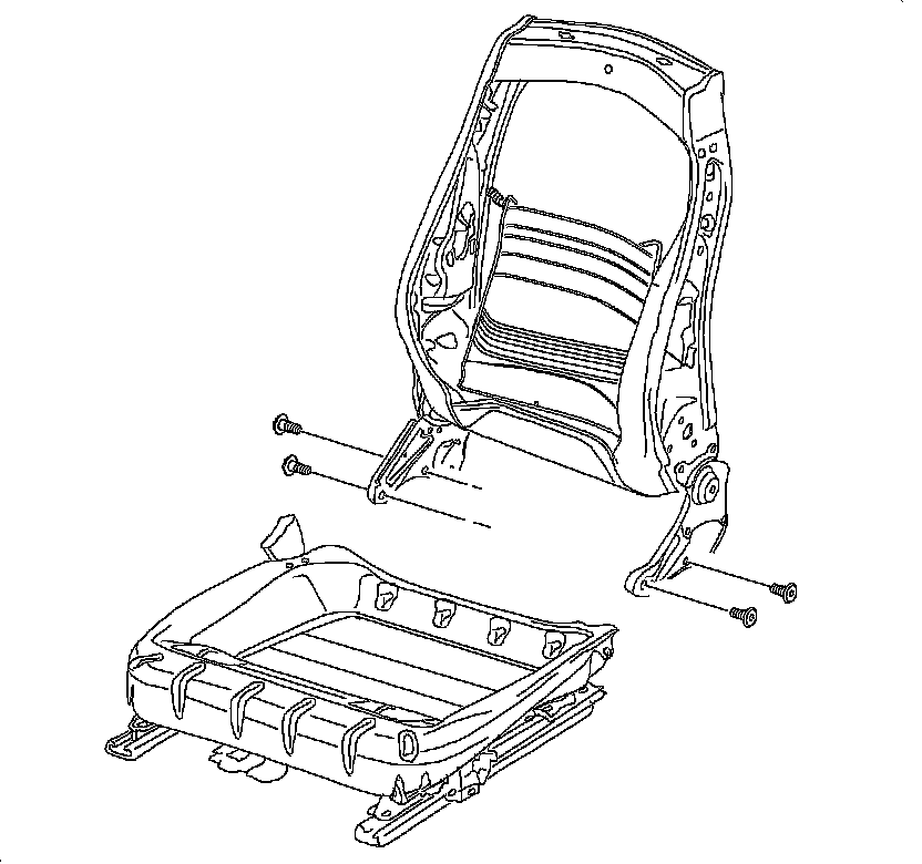 14. Remove the seat back attachment bolts and remove the seat back from the seat cushion frame.