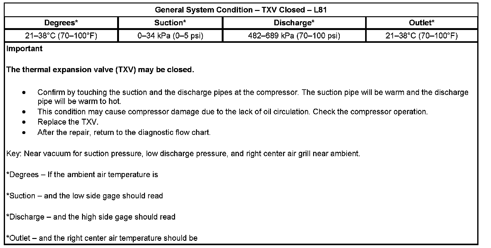 General System Condition - TXV Closed:
