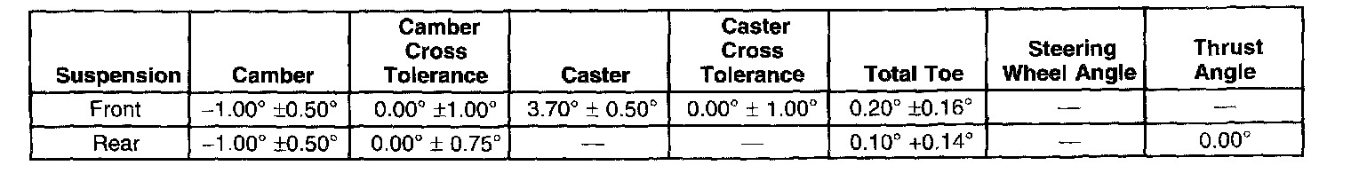 Wheel Alignment Specifications: