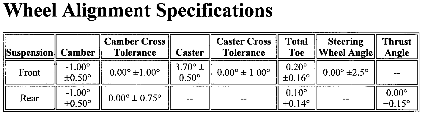 Wheel Alignment Specifications