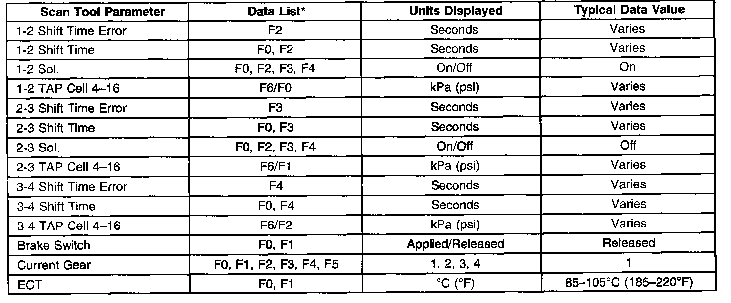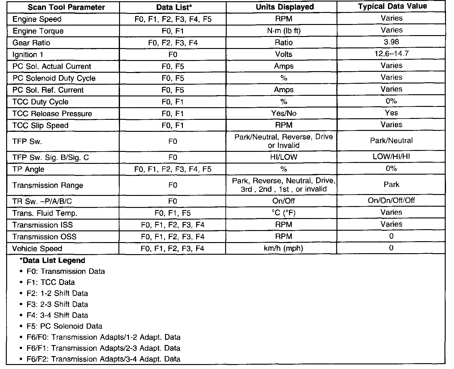 Transmission Scan Tool Data List (3.0L)Use the scan tool data values under the following conditions:
