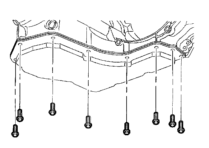 Notice: Pry the oil pan carefully in order to prevent damage to the transaxle case or the oil pan sealing surfaces.