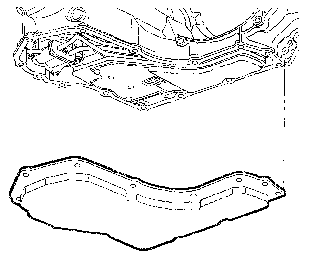 4. Install the oil pan gasket, the oil pan, and hand start the oil pan bolts.