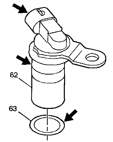 Output Shaft Speed Sensor Installation1. Inspect the vehicle speed sensor (62) for damage to the sensor, the electrical connector, or the O-ring (63).