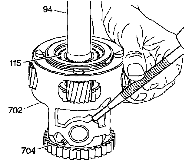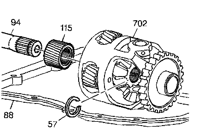 4. Remove the output shaft (94) from the differential carrier (702).