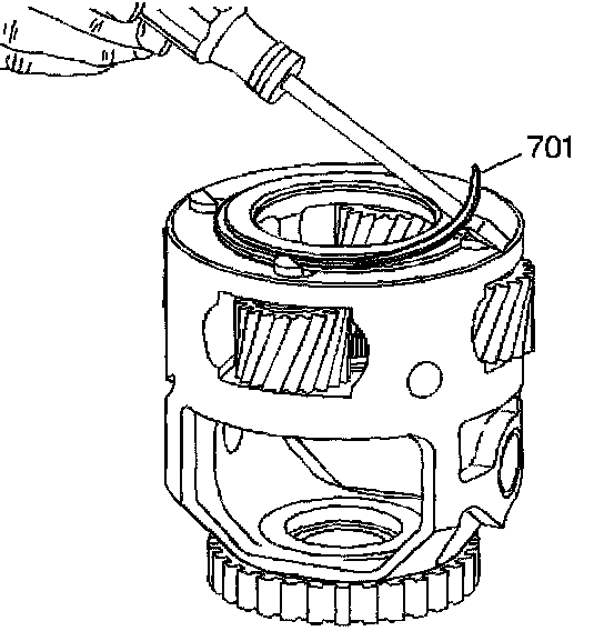 8. Remove the final drive carrier spiral retaining ring (701).