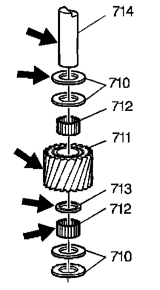 10. Remove the four pinion gears (711).