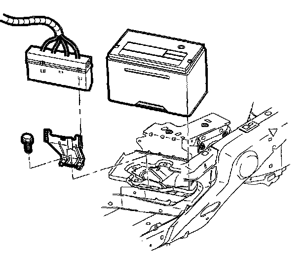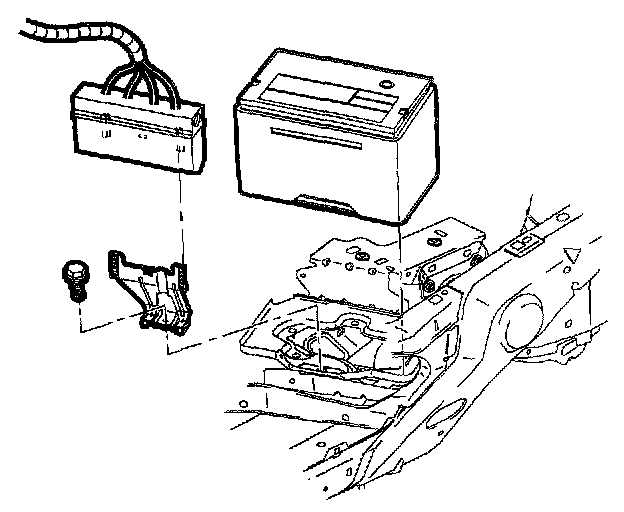 28. Install the underhood fuse block case to the battery tray and install the bolt. Tighten the underhood fuse block case bolt to 9 Nm (80 inch lbs.).