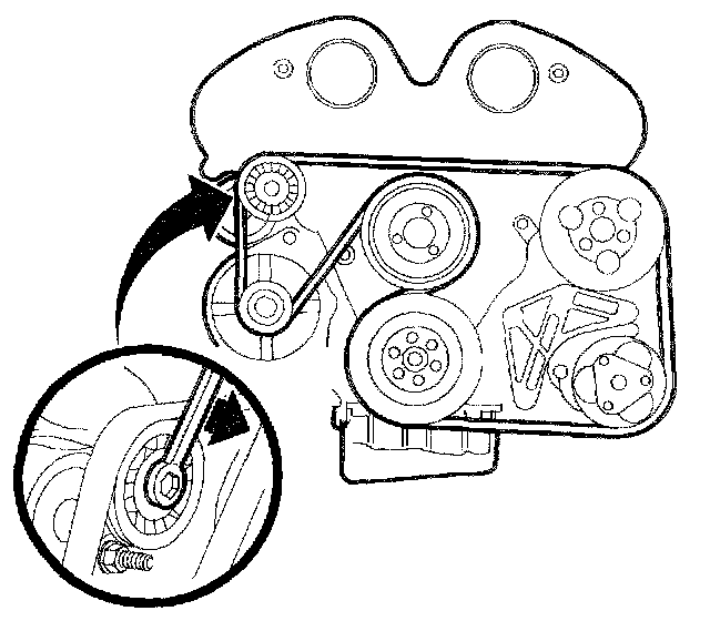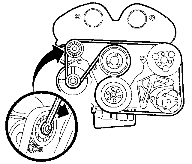 12. Remove the accessory drive belt tensioner assembly (81 [V6] only).