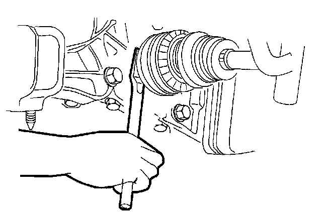 Notice: When removing the right hand axle shaft, the transaxle stub shaft may come out of the transaxle with the axle shaft. When this occurs, inspect the axle shaft seal in the transaxle for damage and replace if necessary.