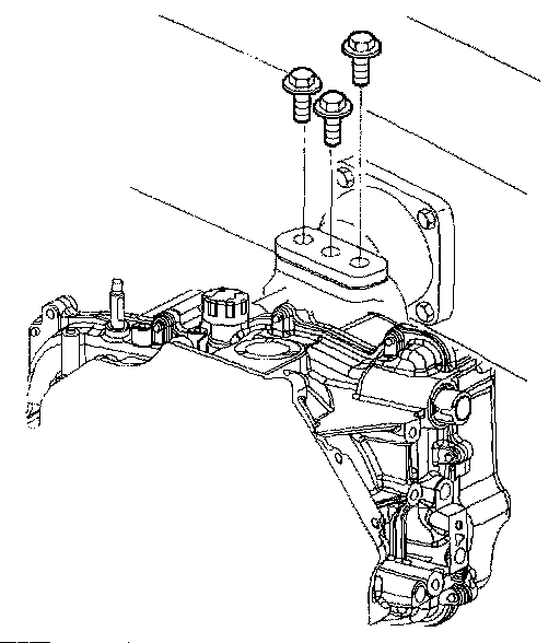 6. Reference the alignment marks made during disassembly and install the left transaxle mount bolts. Tighten the transaxle mount (left)-to-transaxle mount bracket bolts to 55 Nm (41 ft. lbs.).