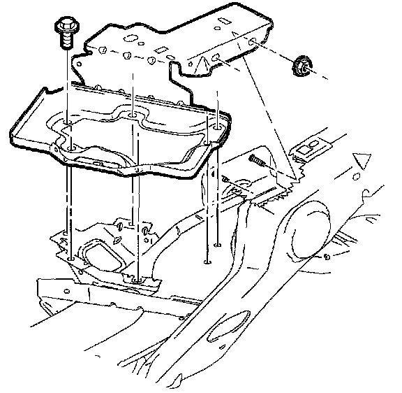 8. Remove the control cable bracket from the rear powertrain mount. Tie the cable and bracket to the dash panel.
