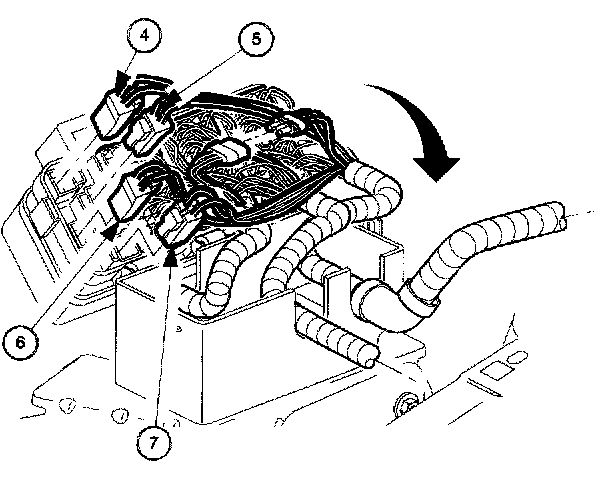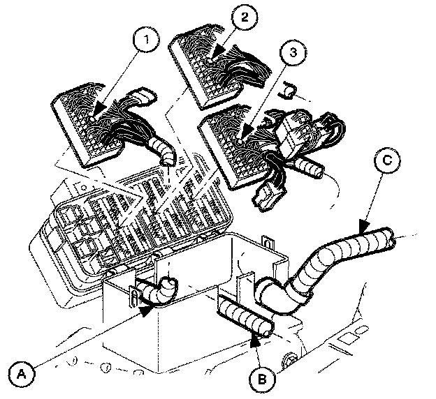 29. Install the wire harnesses to the fuse block case. The wire harness grommets have retaining tabs that lock into the case when the harnesses are fully installed.