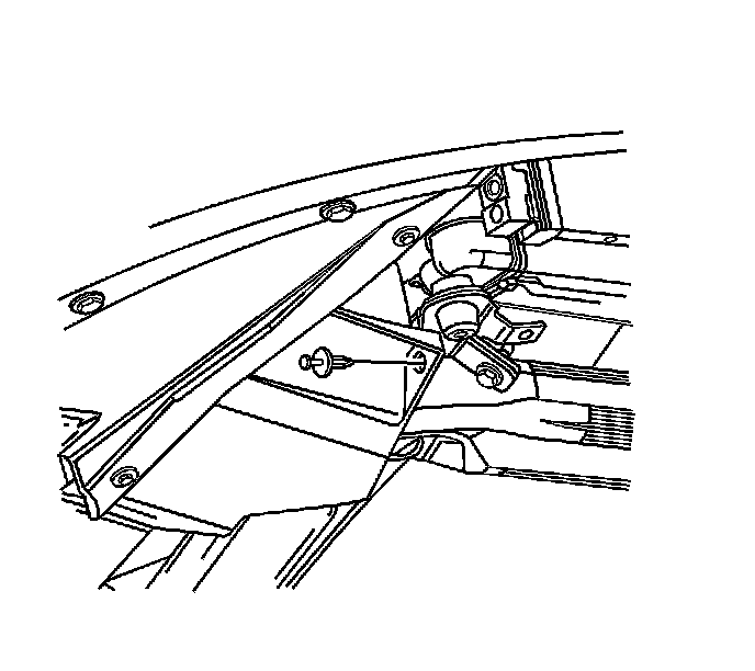 7. Remove the right engine splash shield to radiator mount push-in retainer.
