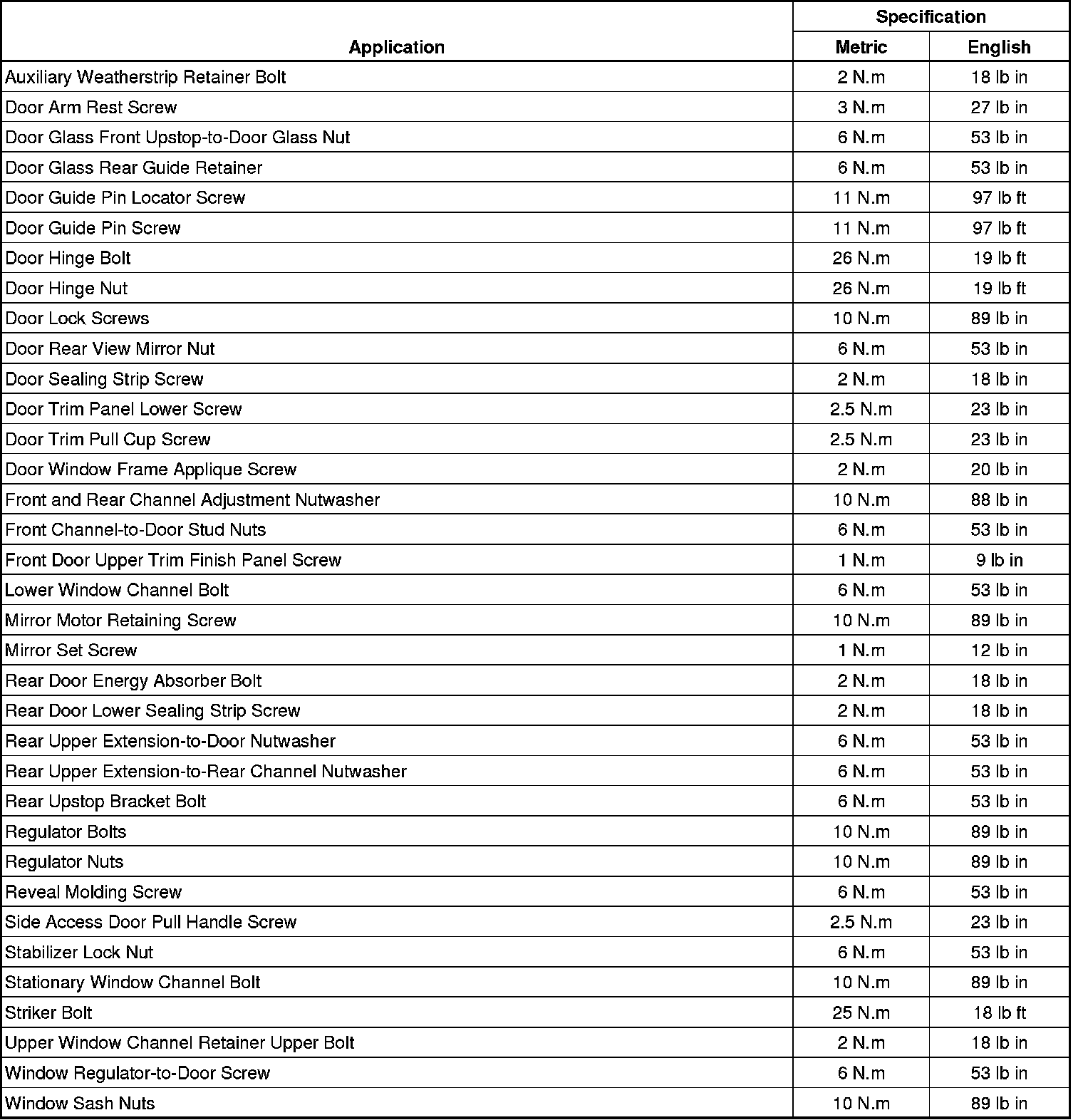 Fastener Tightening Specifications