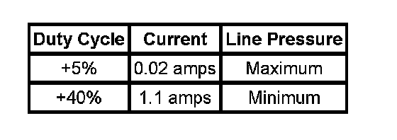 When vehicle operating conditions are appropriate to apply the TCC, the TCM immediately increases the duty cycle to approximately 42 percent. The TCM then ramps the duty cycle up to approximately 90 percent to achieve full TCC apply pressure. The rate at which the TCM increases the duty cycle controls the TCC apply. Similarly, the TCM also ramps down the TCC solenoid duty cycle to control the TCC release.
