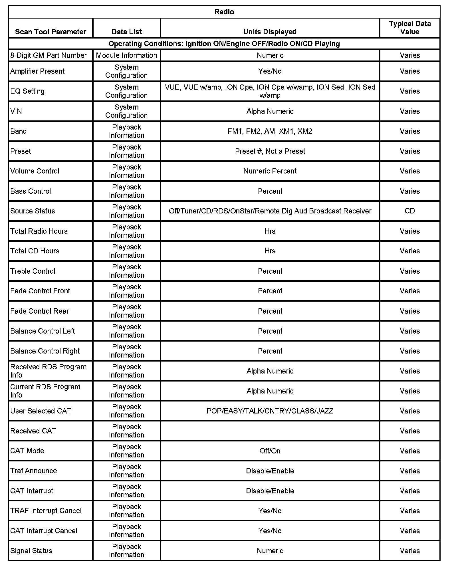 Scan Tool Data List - Radio: