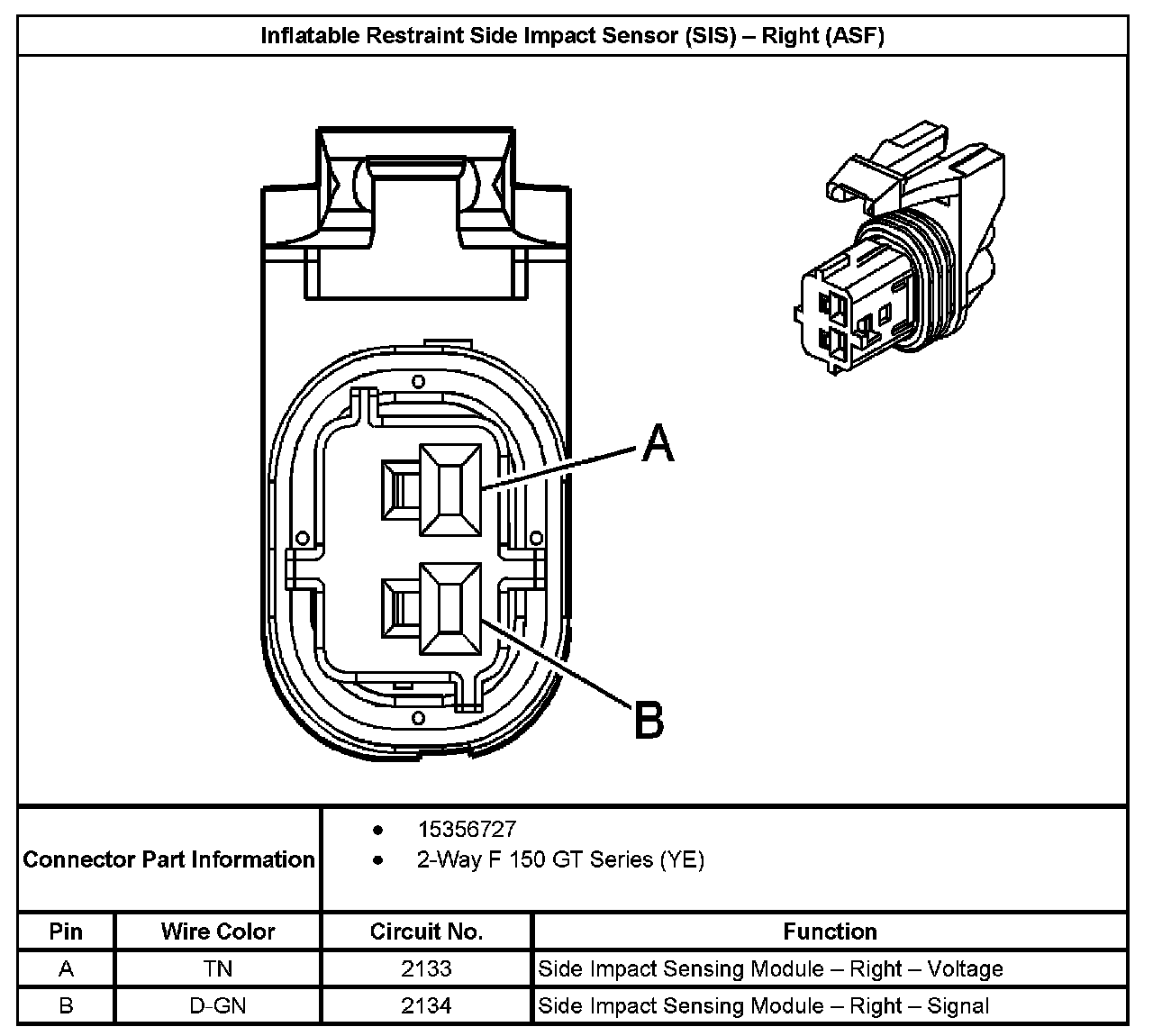 Inflatable Restraint Side Impact Sensor (SIS)-Right (with RPO Code ASF):