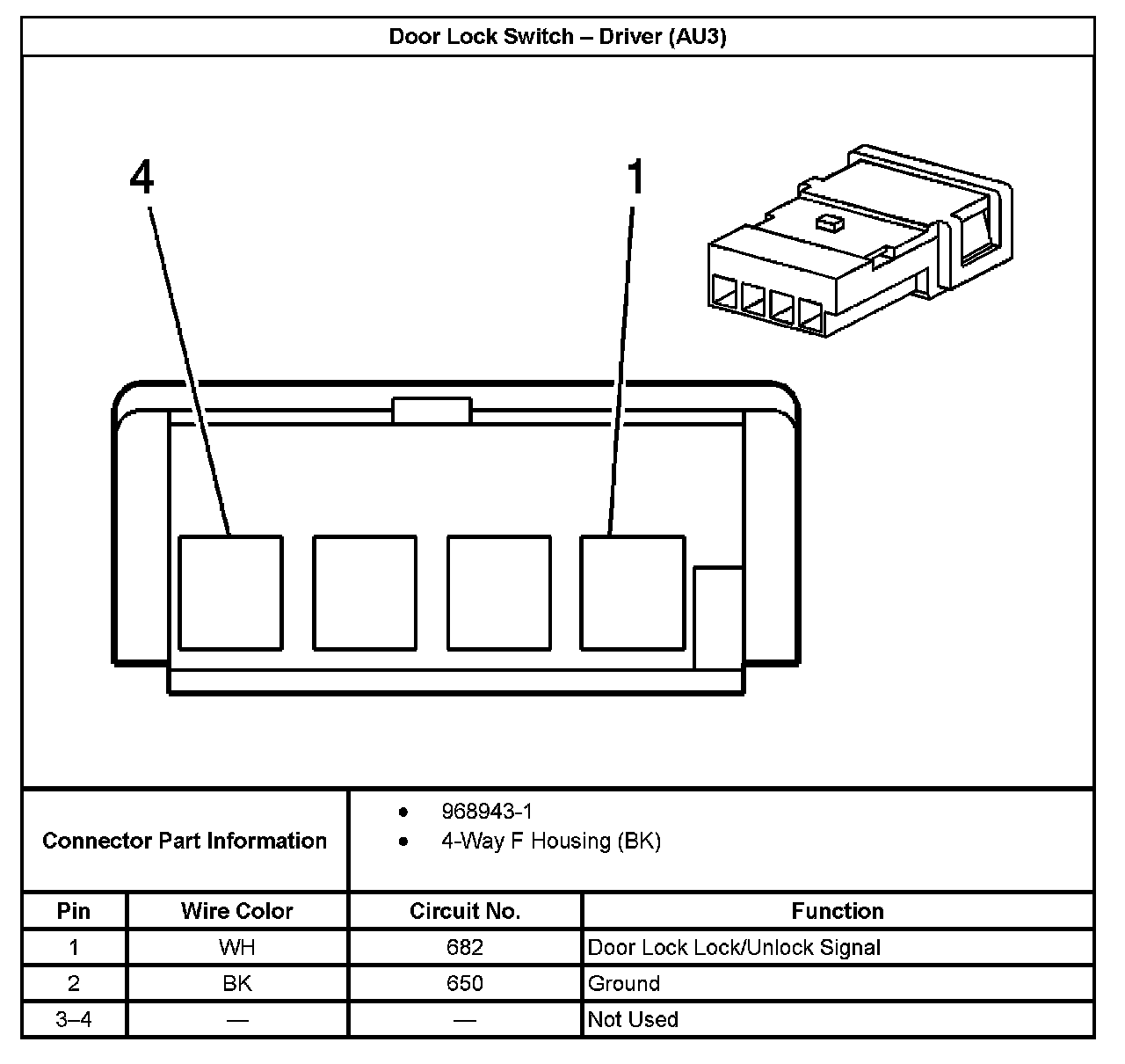 Door Lock Switch - Driver (With RPO Code AU3):