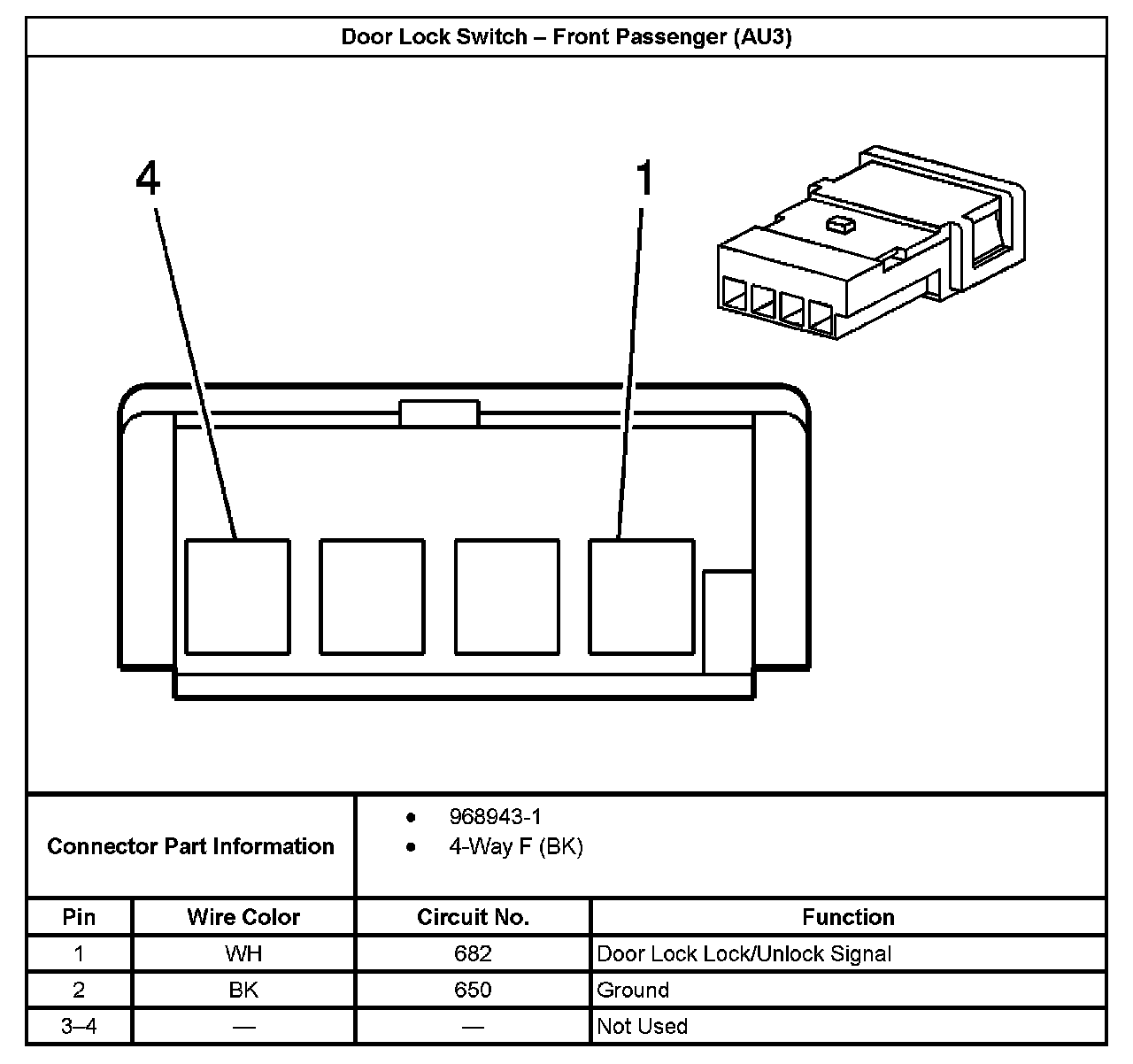 Door Lock Switch - Front Passenger (With RPO Code AU3):