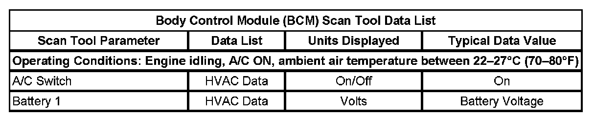Body Control Module (BCM) Scan Tool Data List: