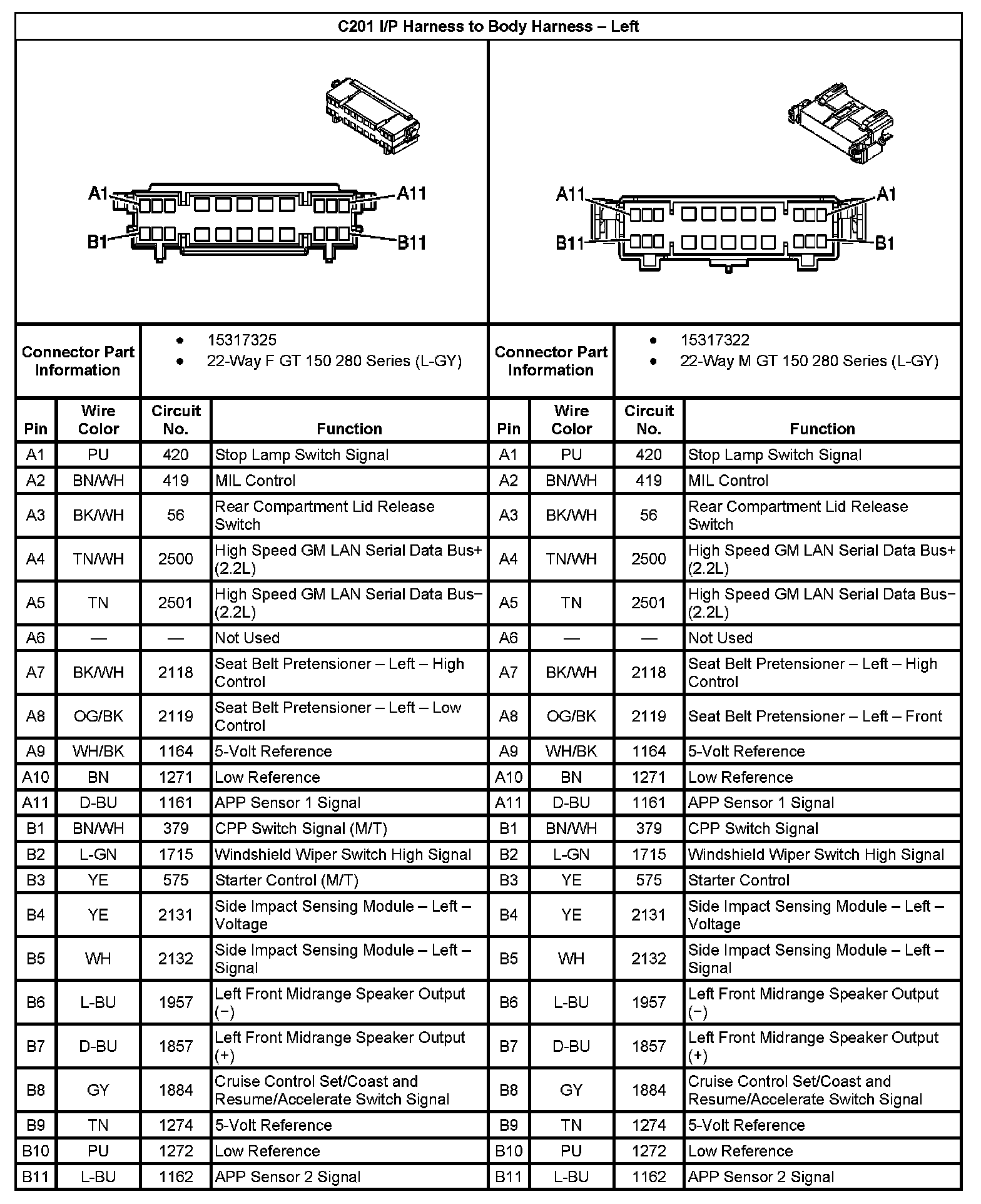 C201 I/P Harness To Body Harness - Left:
