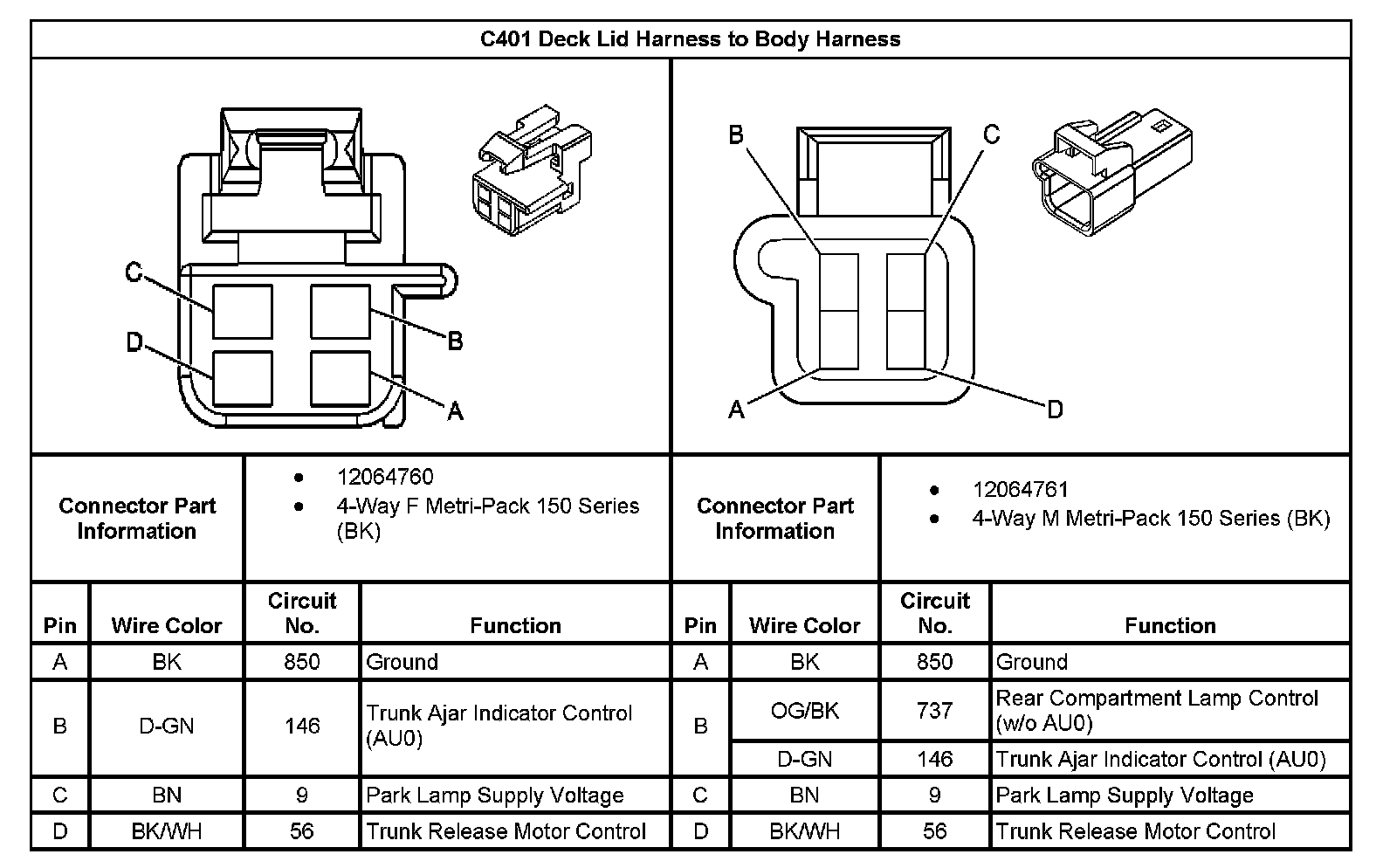 C401 Deck Lid Harness To Body Harness: