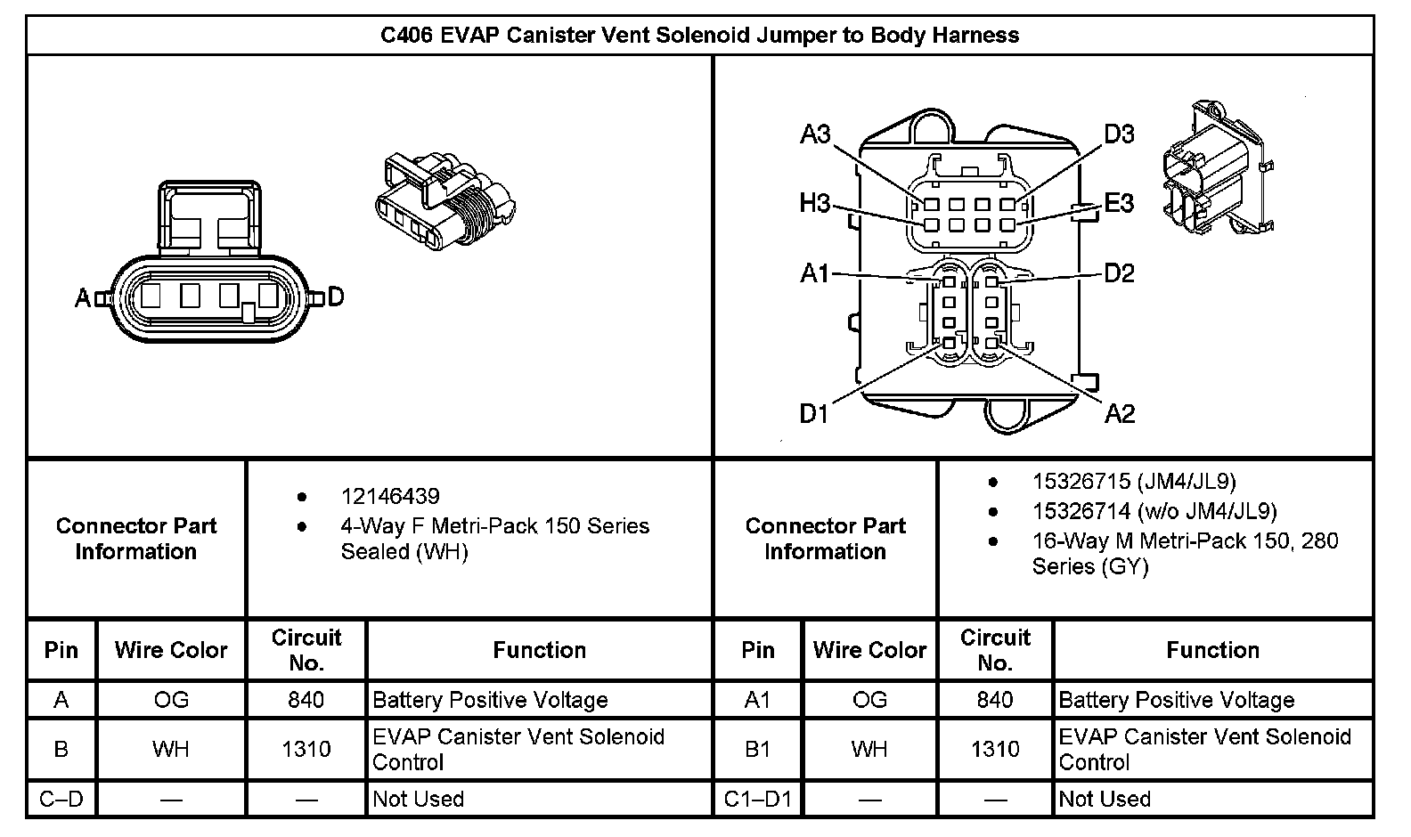 C406 EVAP Canister Vent Solenoid Jumper To Body Harness:
