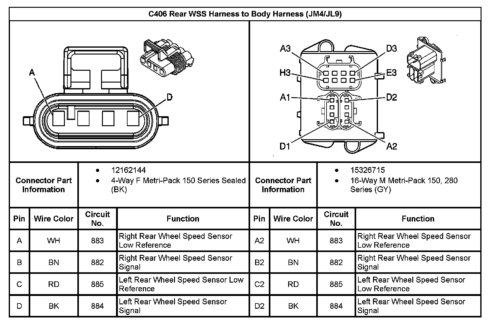 C406 Rear WSS Harness To Body Harness (With RPO Code JM4/JL9):