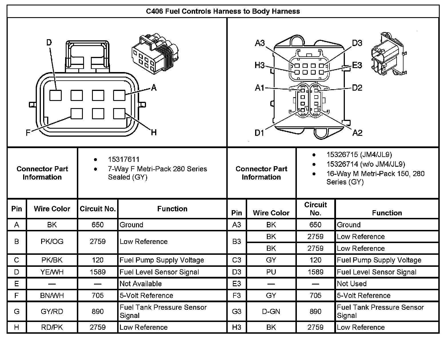 C406 Fuel Controls Harness To Body Harness: