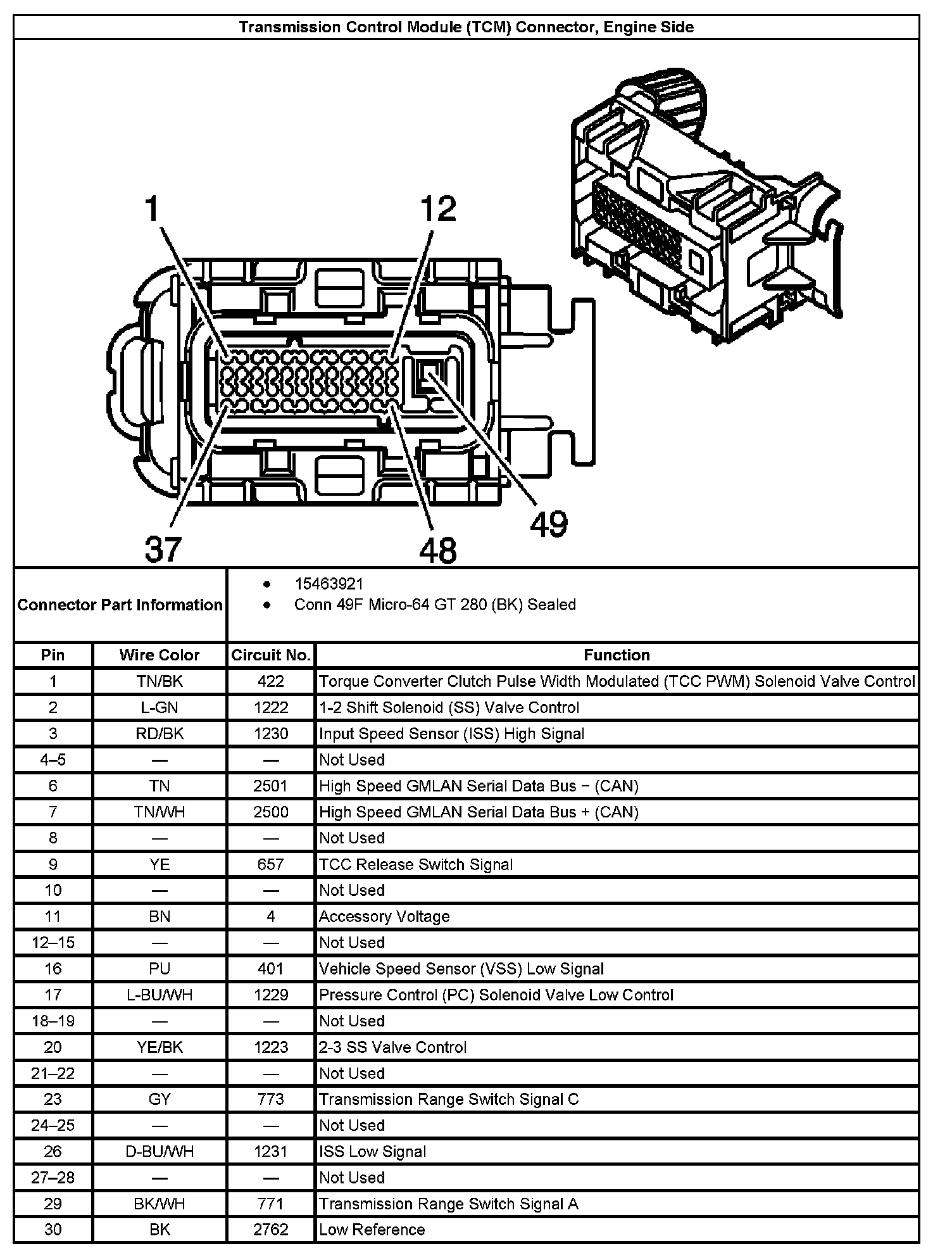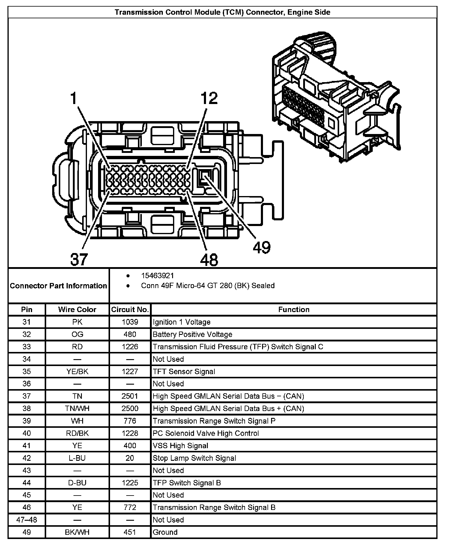Transmission Control Module (TCM) Connector, Engine Side: