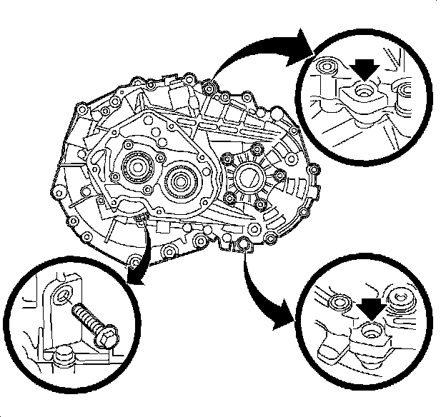 20. Remove the case-to-clutch housing bolts and tap down 2 case-to-clutch housing alignment sleeves.