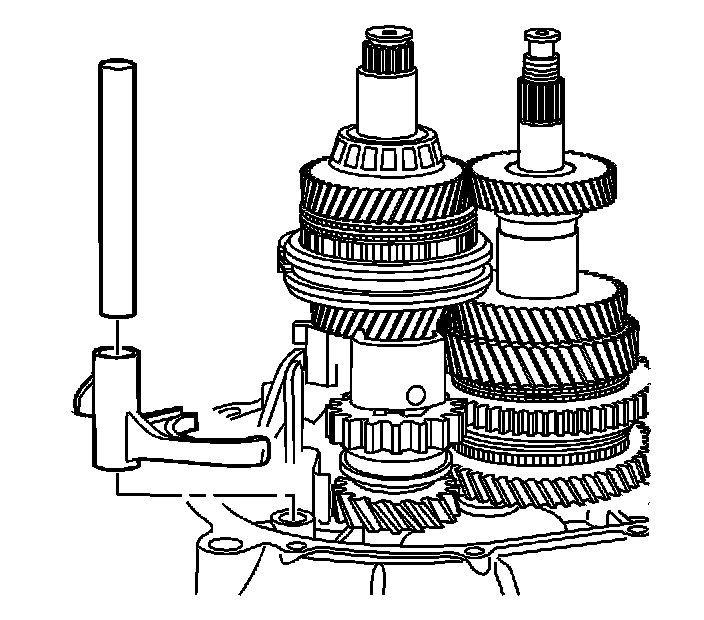 Important: Make sure the 5th gear shift shaft does not come out of the transaxle when the 5th gear shift fork is removed.