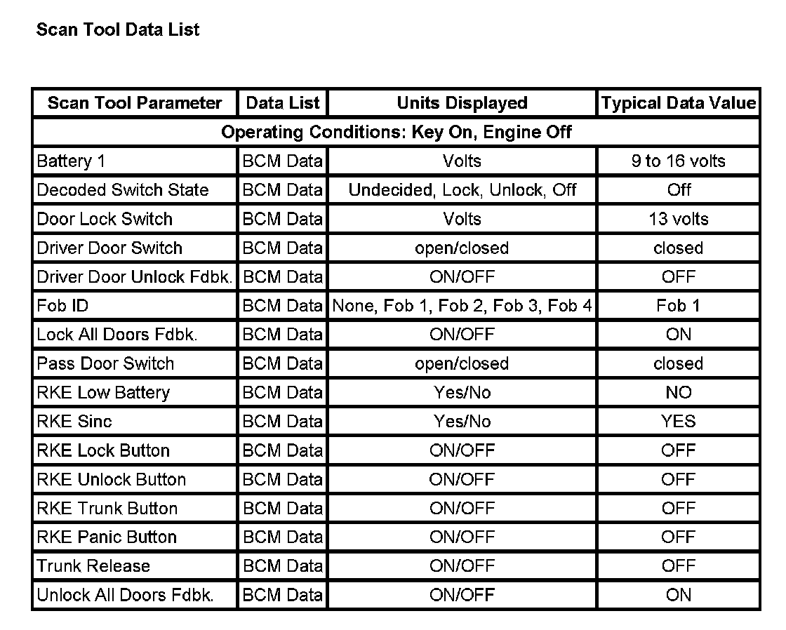 Scan Tool Data List: