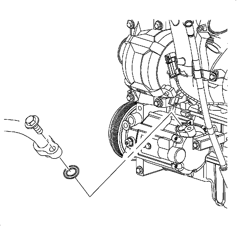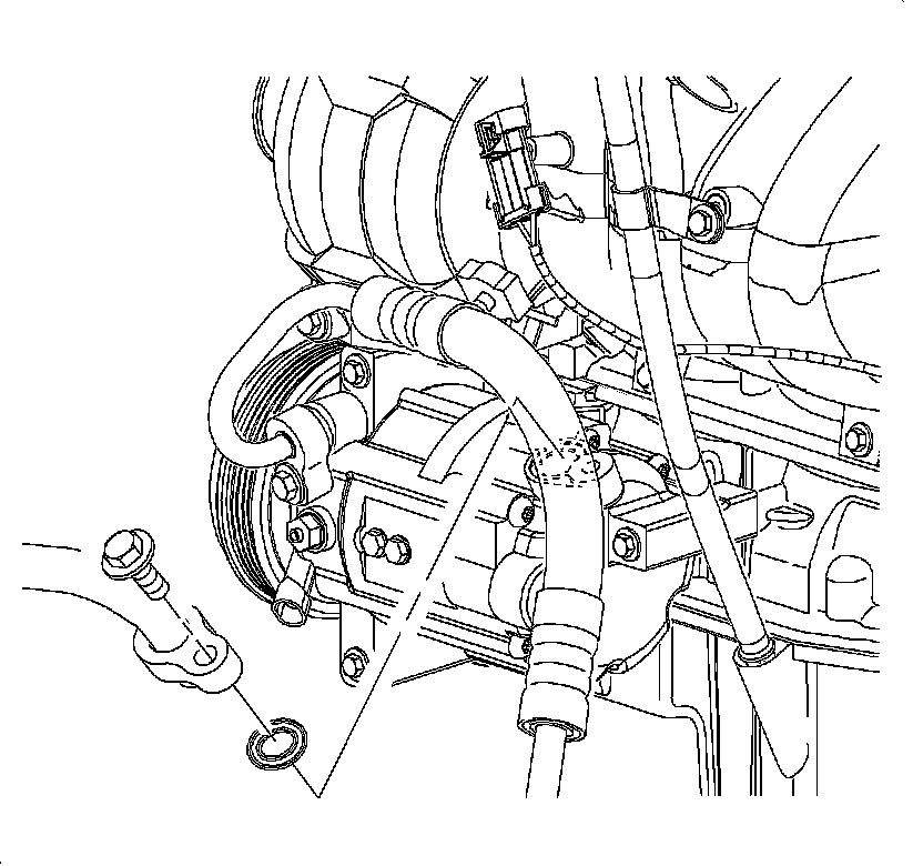 11. Remove the discharge line and seal washer from the compressor.