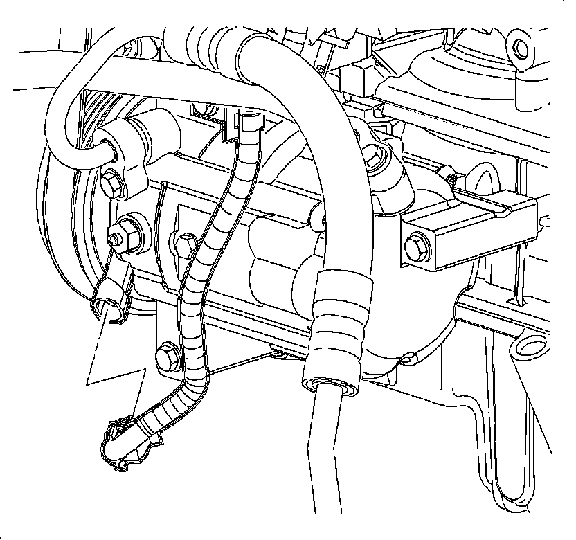5. Install the upper compressor mounting bolt through the wiring harness bracket.