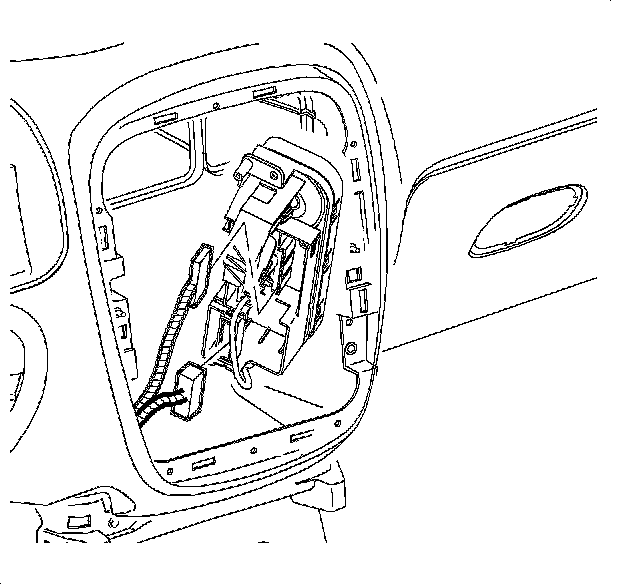 9. Rotate the HVAC control assembly downward and release the temperature cable flag by pushing the tab forward and pushing down on the cable at the same time.