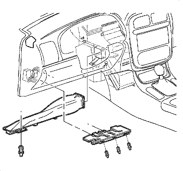 2. Remove the left side lower instrument panel (I/P) closeout panel (hush panel) attachment fasteners and remove the left side lower I/P closeout panel.