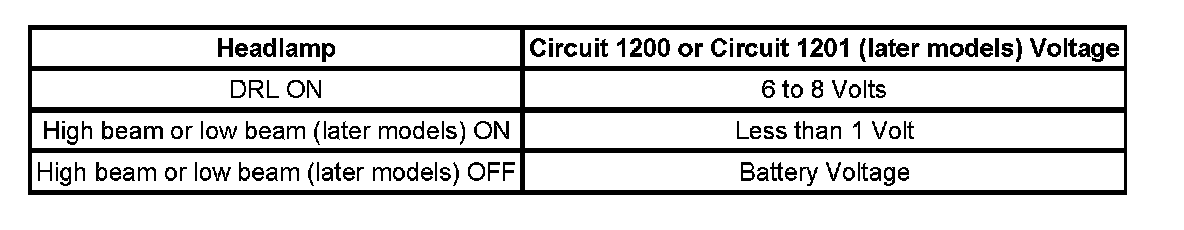 The body control module (BCM) compares the state of the park lamp circuit 74 to the high beam headlamp circuit 1200 and the low beam headlamp circuit 1201.