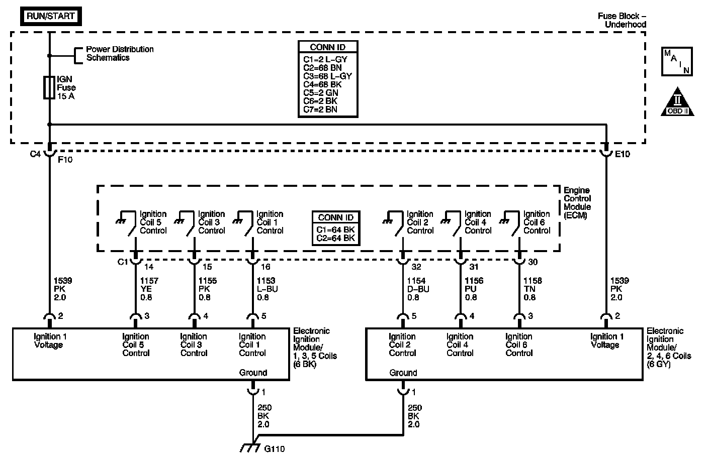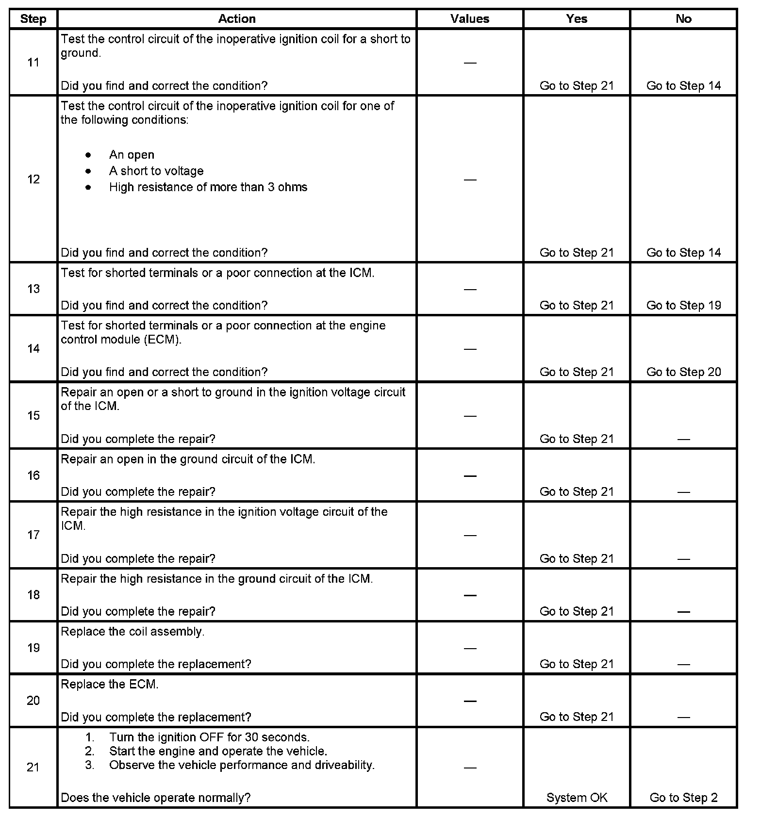 The ignition system uses a ignition control module (ICM) for each bank. The ICMs consist of a controller and ignition coils. The ICMs are mounted in the center of each camshaft cover with short boots connecting the coils to the spark plugs. The engine control module (ECM) primarily uses engine speed and position information from the crankshaft (CKP) and camshaft position (CMP) sensors to control the sequence, dwell, and timing of the spark. The ECM can command each ignition coil ON/OFF by grounding the control circuit of the ignition coil. The control circuits are pulse width modulated (PWM) in order to precisely control the spark events.