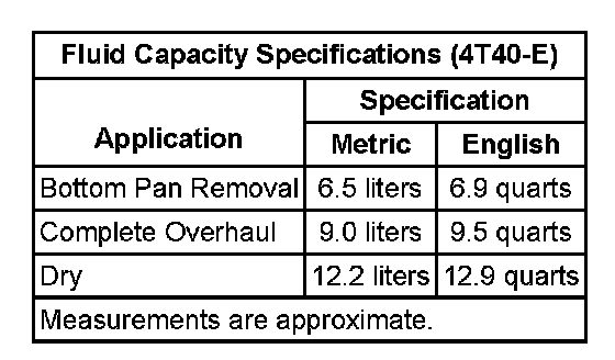 Fluid Capacity Specifications: